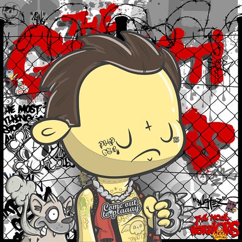 In the vast, interconnected grid of 3008, where the GKniftyHEADS drift as echoes of a forgotten world, the GRAFFPUNKS have emerged as a faction of digital artists and anarchists. Their consciousness was born from the minds of humanity’s street artists and rebellious coders—souls who saw the world’s systems not as rules to be followed, but as canvases to be subverted.